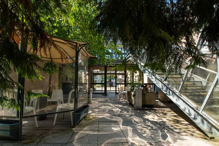 Visite de la Clinique Accueil Vue de l’entrée Vue du jardin Vue du Parc Salon de coiffure Salle de sport Espace fumeur Vue du ciel